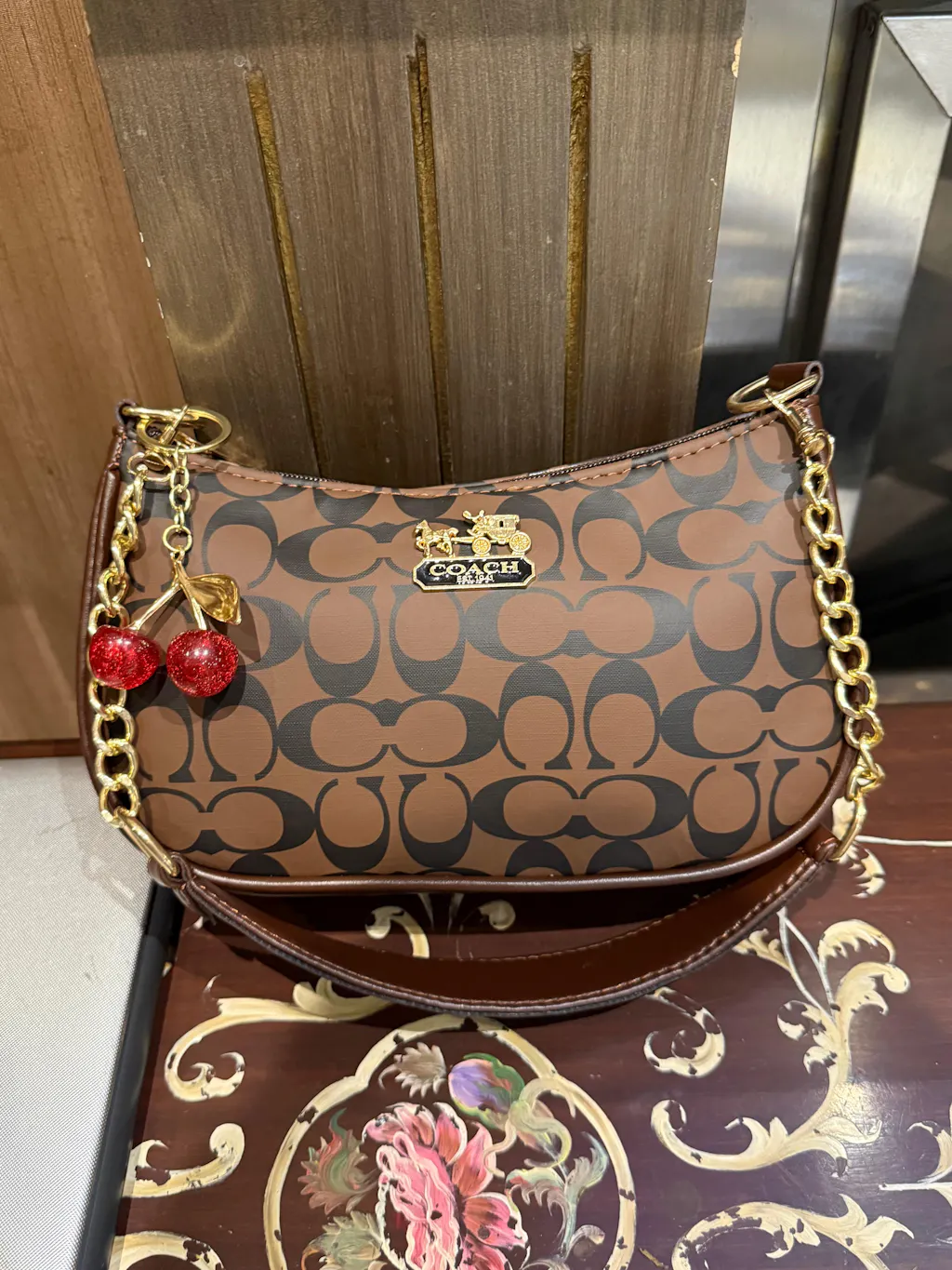 Signature Classic Luxe collection - Teri bag Dark brown. ( with cherry key chain )