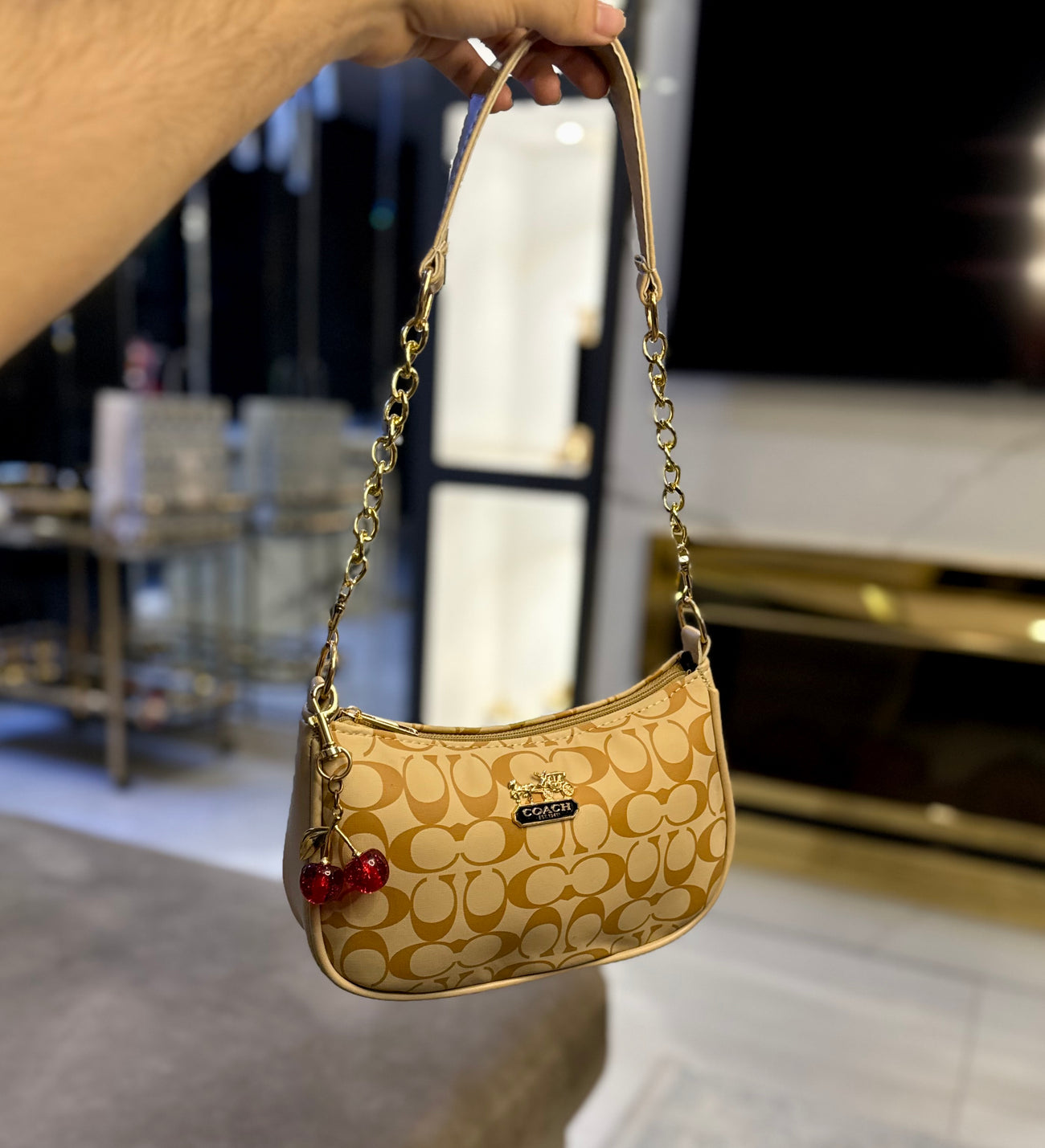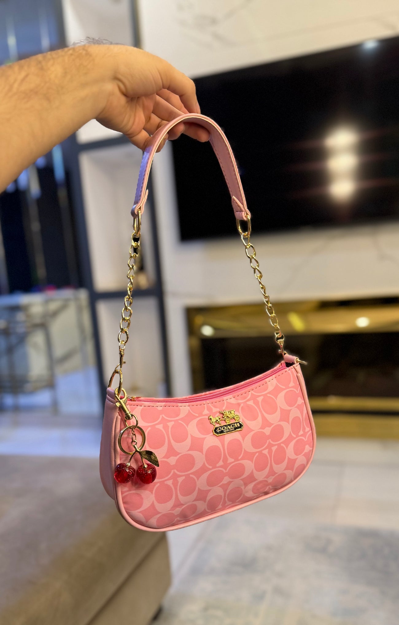 Signature classic Luxe collection - Teri shoulder bag Baby pink. ( with cherry key chain )