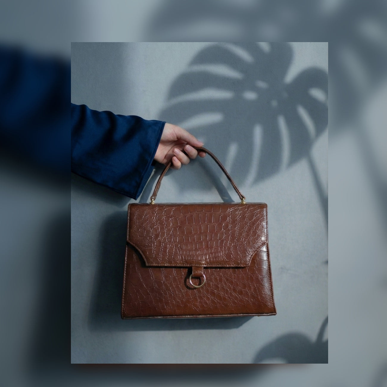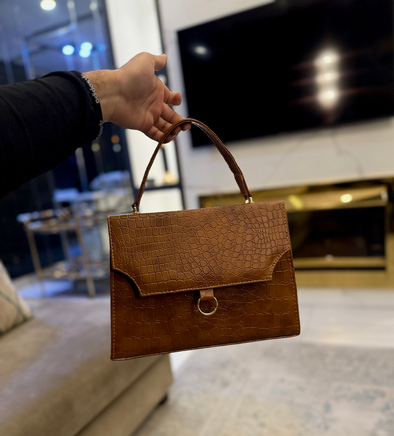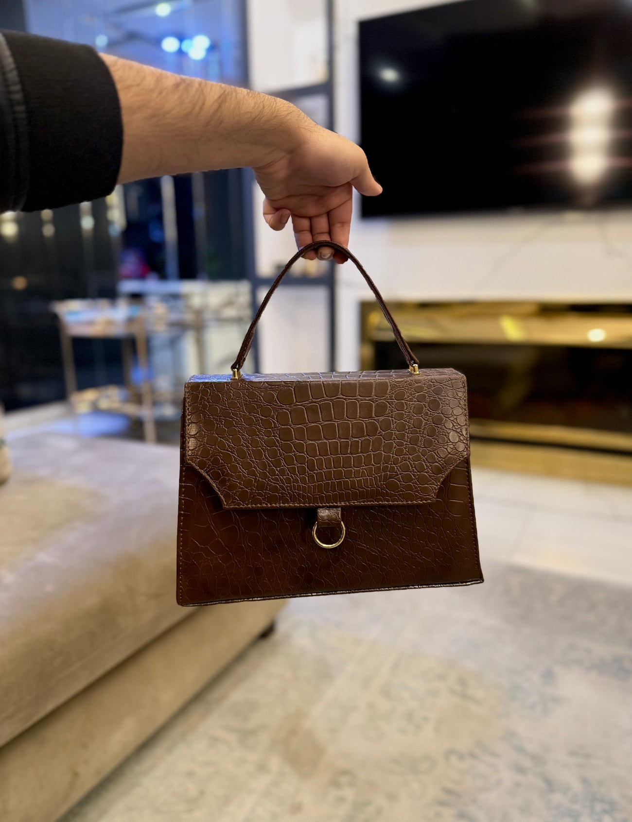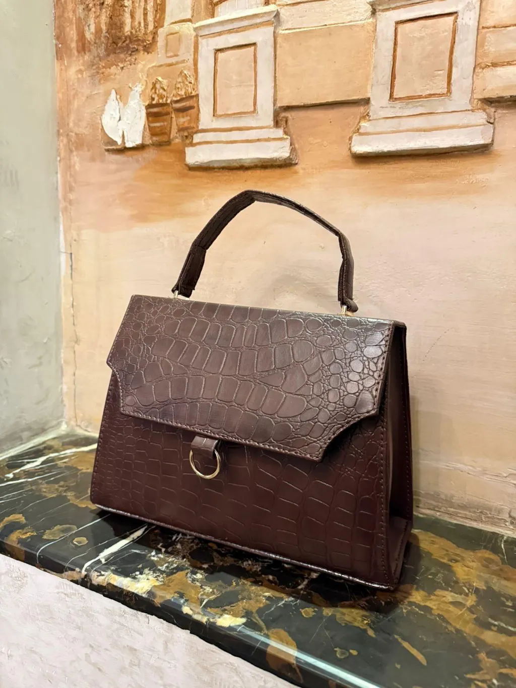 Wish Collection - Croco Ring Bag Espresso Brown.